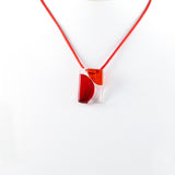 Made with Fused Glass, on a 17" Magnetic Satin Cord. Pendant measures approximately 1 1/8" (2.7 cms) long by 3/4" (1.9 cms) wide.