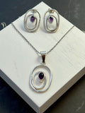 Sterling Silver Earrings with double Ovals and a Cabochon Amethyst in a Bezel Setting.