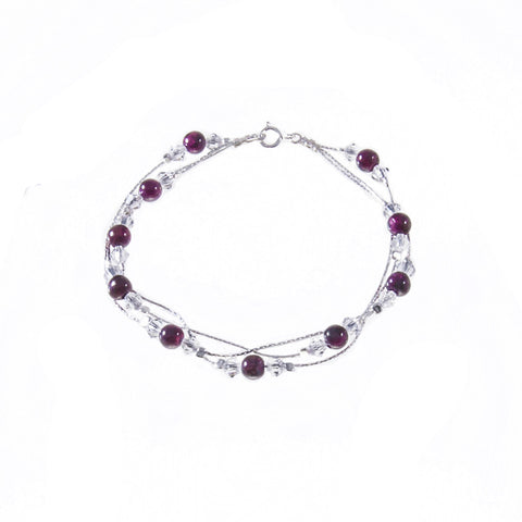 The Xuxek Bracelet is the perfect accessory for completting any look. Crafted from genuine Garnet, Swarovski crystals and three strands of "liquid silver," it delicately drapes around the wrist for a luxurious yet sophisticated feel. Add a touch of elegance to your wardrobe with bracelet.