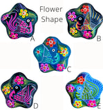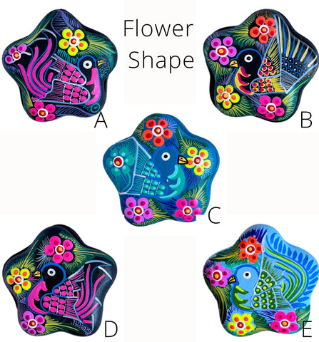 One of a Kind Clay Flower shaped Jewelry Box, Painted with Birds and Flowers Motifs.