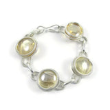 Silver plated oval links bracelet with 4 pieces of Champagne-Colored glass beads. It features a hook style clasp that makes it super easy to put on!