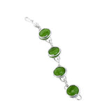 Silver plated oval links bracelet with 4 pieces of Green Colored Glass Beads. It features a hook style clasp that makes it super easy to put on!