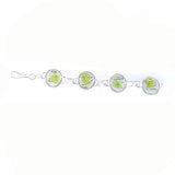 Silver plated oval links bracelet with 4 pieces of Clear Glass with a Green Stripe. It features a hook style clasp that makes it super easy to put on!