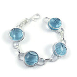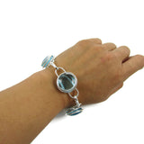 Silver plated oval links bracelet with 4 pieces of Light blue glass beads. It also Features a hook style clasp that makes it super easy to put on!