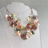 Indulge in the luxury of our exquisite eco-friendly necklace and earrings set, carefully crafted with recycled fish scales in a stunning blend of vibrant colors and coated with silver leaf. Every necklace is a one-of-a-kind masterpiece, with each fish scale meticulously cleansed, lacquered, and hand-painted. This stunning work of art is not only a unique accessory, but also a versatile piece that can be worn long or short, and even used as a hair ornament.