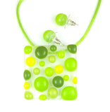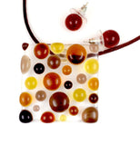 Square Glass Pendant with Colorful Fused Glass Bubbles in GREEN