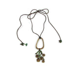 Long Necklace with Fused Glass Oval Pendant and Chaquira Beads.