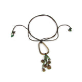 • Materials: Fused Glass, Chaquira Beads, Satin