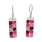 Made with Fused Glass. Earring hooks are Sterling Silver. Approximate measurements: Each Rectangular glass piece measures: 1 3/8" (3.5 cms) long by 1/8"(.4 cms) wide. Earrings total lenght (from top of hooks): 3" (7.5 cms).