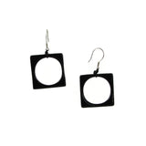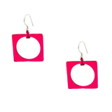 Modern, Geometric Fused Glass Earrings Featuring a Square with a Circle.