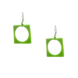 Modern, Geometric Fused Glass Earrings Featuring a Square with a Circle.