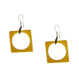 Modern, Geometric Fused Glass Earrings Featuring a Square with a Circle.