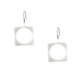 Modern, Geometric Fused Glass Earrings Featuring a Square with a Circle.