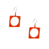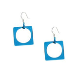 Modern, Geometric Fused Glass Earrings Featuring a Square with a Circle.