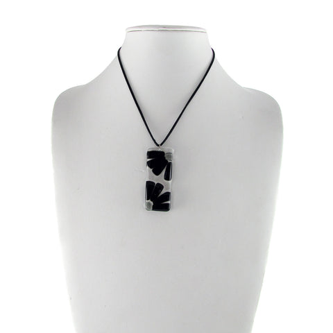 Made with Fused Glass, Necklace is Silk. Clasp is Magnetic and Nickel-Free. Approximate size of Pendant is 2.36" (6 cms) long by .98" (2.5 cms) Necklace is about 17" long. Matching glass ball stud earrings included in the price.