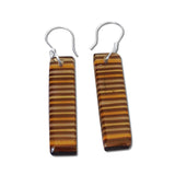 Glass, Rectangular Earrings with multi stripes in different shades of Orange.