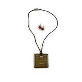 The LGAN Fused Glass pendant features a glass square with colorful, horizontal lines.