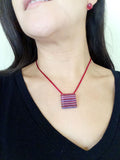 Small Glass pendant featuring multiple stripes in different shades of Magenta.