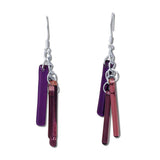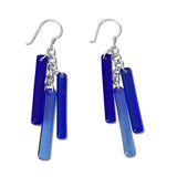 Glass Earrings that feature 3 long, thin, glass rectangles dangling from a Chain in 3 different colors: Black, Gray and Clear.