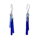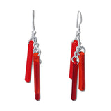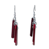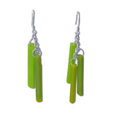 Made with Glass. Earring hooks are Sterling Silver, Chain is metal. Approximate measurements: Each Rectangular glass piece measures: 1 3/8" (3.5 cms) long by 1/8"(.4 cms) wide. Earrings total lenght (from top of hooks): 3" (7.5 cms).
