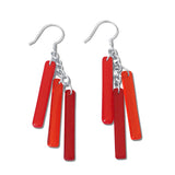 Made with Glass. Earring hooks are Sterling Silver, Chain is metal. Approximate measurements: Each Rectangular glass piece measures: 1 3/8" (3.5 cms) long by 1/8"(.4 cms) wide. Earrings total lenght (from top of hooks): 3" (7.5 cms).