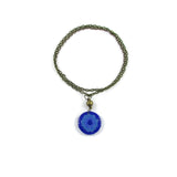 The pendant is made by using colorful, small triangle pieces of glass arranged in a pattern against a Clear, Circular, Sheet of Glass. Then it goes into the oven at high temperatures so that the colorful and clear glass fused together achieving this look.
