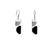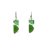 Rectangular Clear Glass Earrings with two colorful glass half circles.