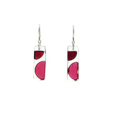 Rectangular Clear Glass Earrings with two colorful glass half circles.