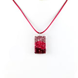 Rectangular Glass Pendant with Multiple, Small Triangular Pink-Colored Fused Glass Pieces.