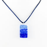 This Pendant is made by using colorful, triangle-like pieces of glass against a Clear Sheet of Glass. Then, they go into the oven at high temperatures so that the colorful and clear glass fuse together, achieving this look. It can be worn front or backwards. Either way, it looks beautiful. It also comes with a matching Pink Silk Necklace with Magnetic Clasp and Matching Glass Ball Stud Earrings.