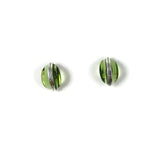 Oval, Concave, Light Green Crystal Stud Earrings in a Silver, Wrap like Setting.
