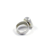 This unique Ring is made with Dichroic Glass and features an adjustable band, so it's one size fits most. The beauty of this ring lies in the uniqueness of the Dichroic glass piece. There are no two that are the same, and depending on the light and position of the ring, you can see different colors. The pictures show different angles of the ring and you can see different colors in the glass. The shades of colors that can be seen in this ring include Silver, Orange, and Green.